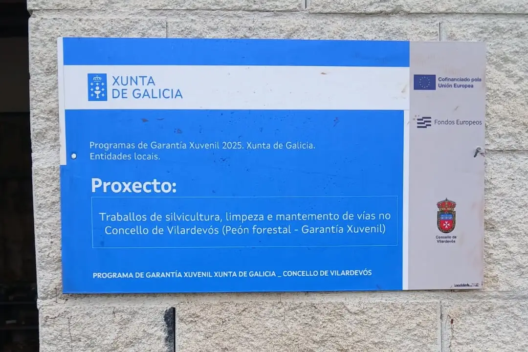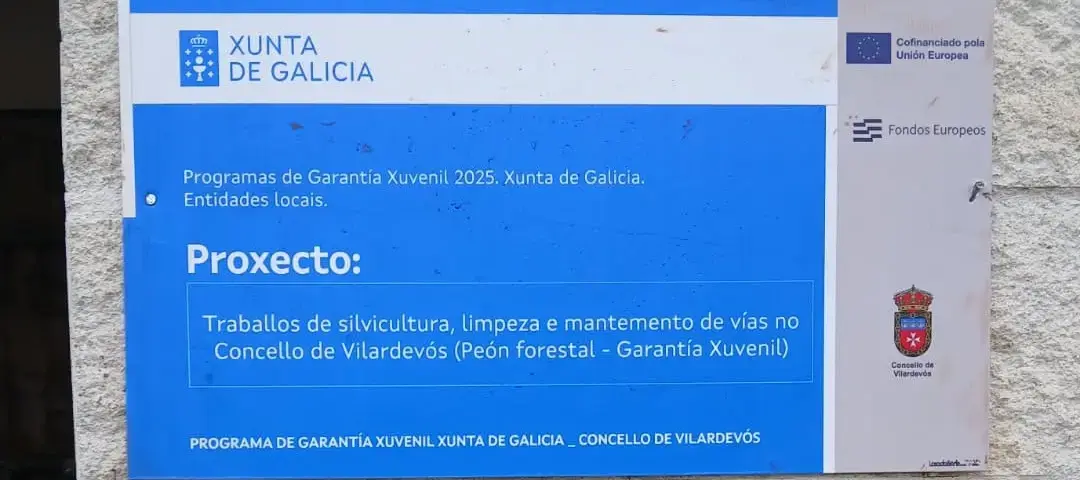 Proxecto: Traballos de silvicultura, limpeza e mantemento de vías no Concello de Vilardevós (Peón forestal – Garantía Xuvenil). Cofinanciación do Fondo Social Europeo Plus Galicia 2021-2027